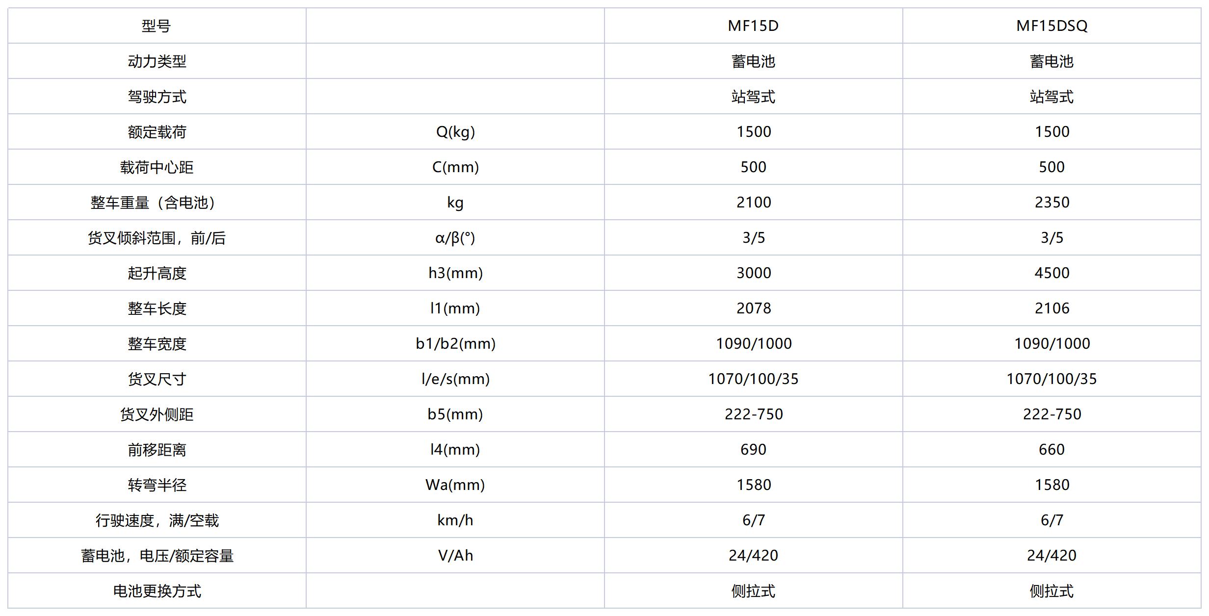 MF系列是新款站駕前移式叉車,承載能力1.5噸;門架可以整體前移或縮回,擁有較小的車身及轉(zhuǎn)彎半徑和更高的工作效率。